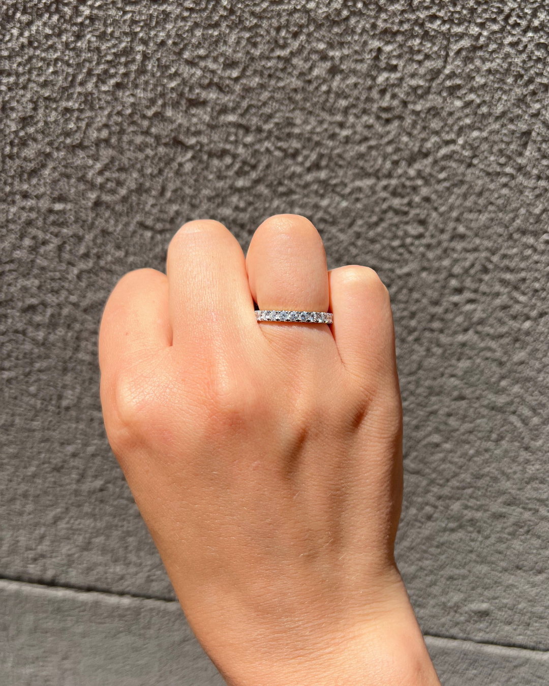 Jennifer chose to refresh her cherished wedding ring, which had shown signs of wear. Her new design incorporates 22 round brilliant cut diamonds, totalling 1.10ct, elegantly set in 18kt yellow gold, preserving the original stones with a refined touch.
