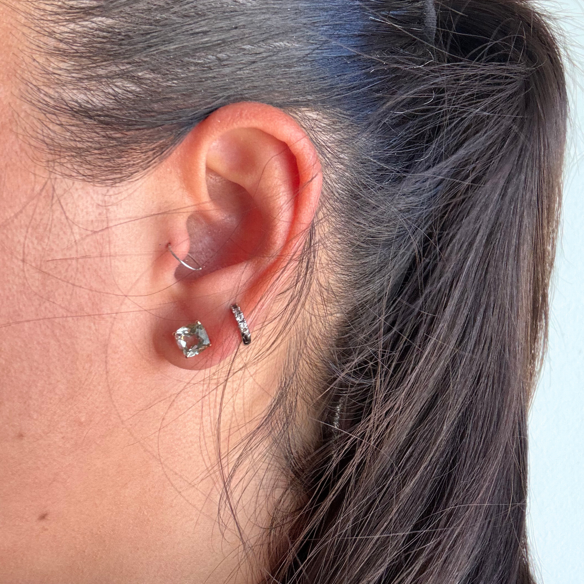 Briella showcases refined elegance through a pair of striking 3.20ct total Green Amethysts, each precision-cut into a square cushion to enhance their luminous, vibrant pale-green glow.