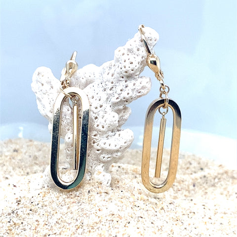 Made in Italy from luminous 9k yellow gold, these oblong drop earrings—with their striking center bar—deliver a polished finish and instant refinement.