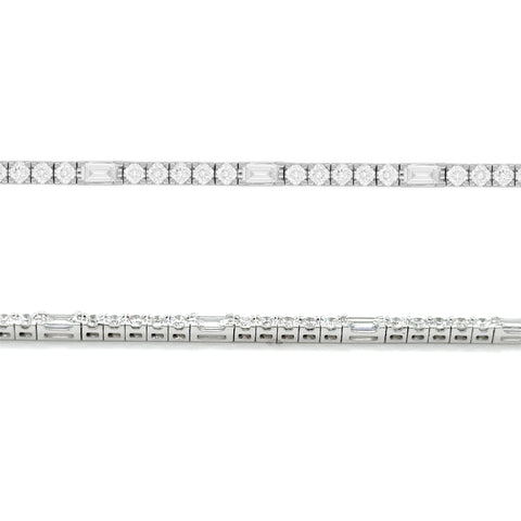 This exquisite tennis bracelet features 3.013ct of round and emerald-cut diamonds claw set into 18kt white gold. An eye-catching accessory to enhance a glamorous evening or make a daytime event...