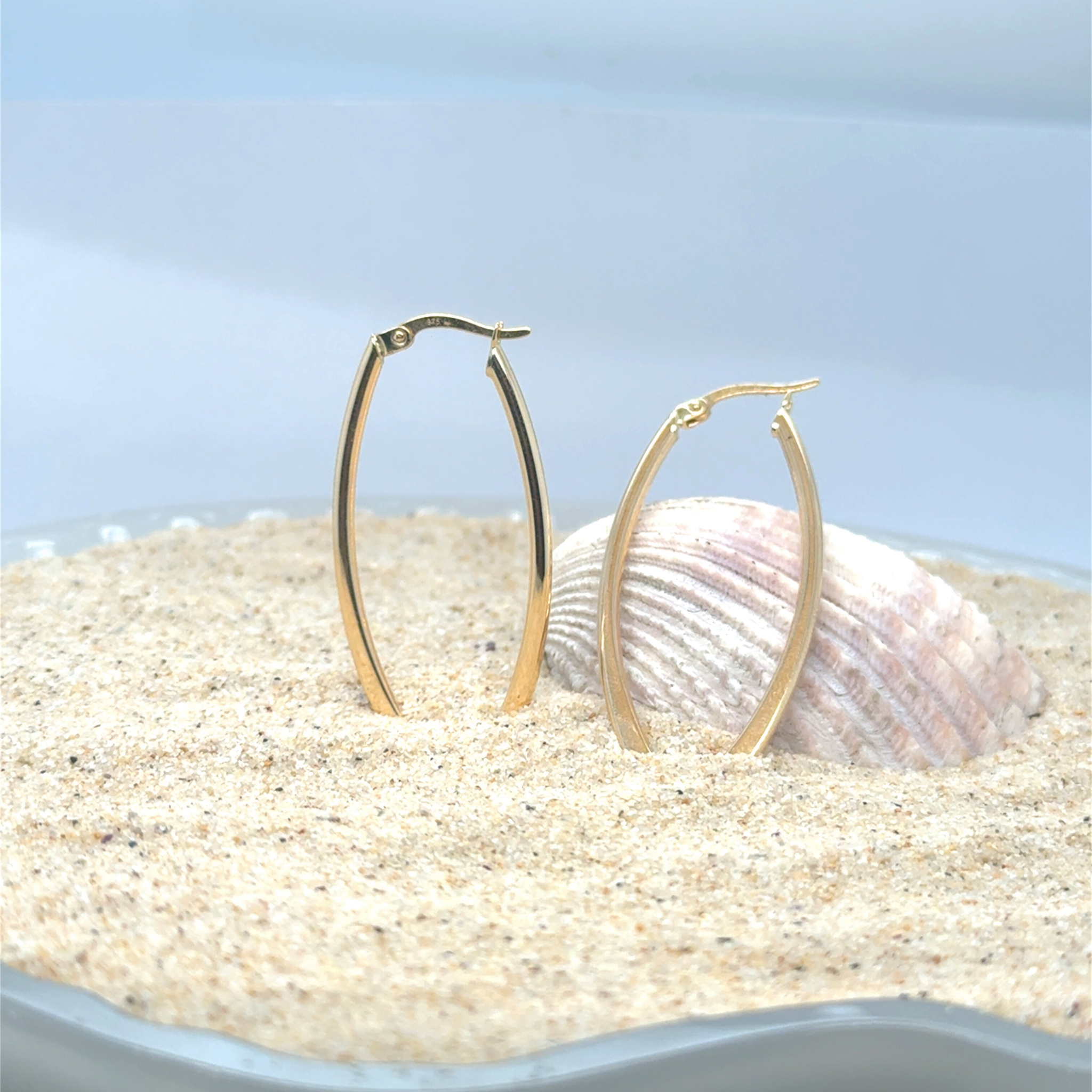 Experience the refined elegance of these 40mm long oval hoops, meticulously made in Italy from 9kt yellow gold. With a 2mm width and a perfectly polished, sleek surface, they embody both luxury and timeless style.